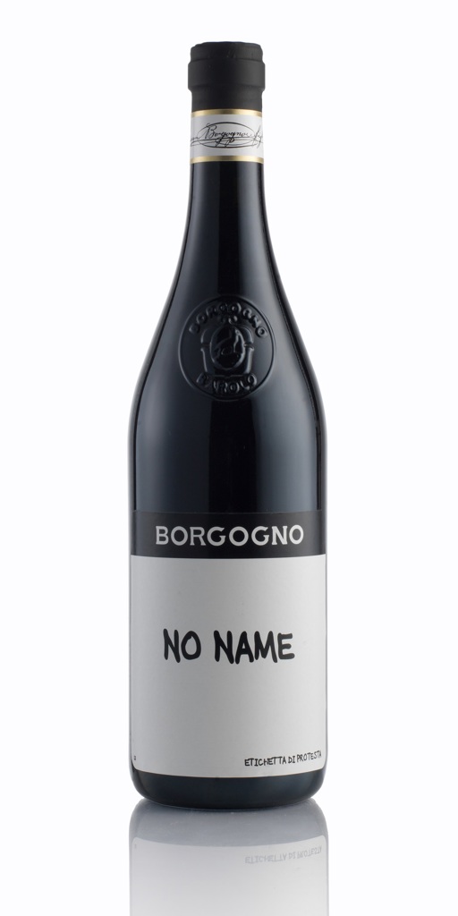Om de kwaliteit van de wijn te garanderen, worden de wijnen uitvoerig gecontroleerd door de autoriteiten. Dat dit tot bureaucratie kan leiden, ontdekten ze bij Borgogno toen ze hun Barolo enkele jaren geleden inzonden om de vermelding ‘Barolo DOCG’ te mogen dragen. De oogst werd gebotteld in etappes en elke keer werd er een fles ter controle ingezonden. De eerste twee flessen werden goedgekeurd, de derde fles werd afgekeurd. Omdat alle drie de flessen exact dezelfde inhoud bevatten, werd er besloten de wijnen te bottelen onder de naam ‘No Name’. De toevoeging ‘Etichetta di Protesta’ is een verwijzing naar de bureaucratie. Na deze oogst zijn ze doorgegaan met het maken van deze wijn. Borgogno ‘No Name’ voldoet aan de vereiste rijping van een Barolo van minimaal drie jaar waarvan twee jaar op houten vaten. 100% Nebbiolo.