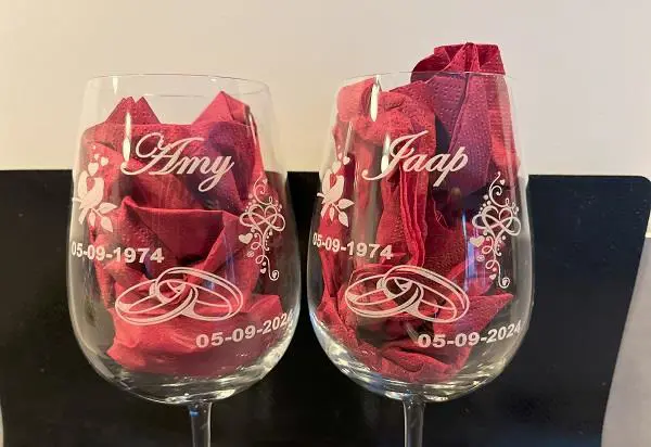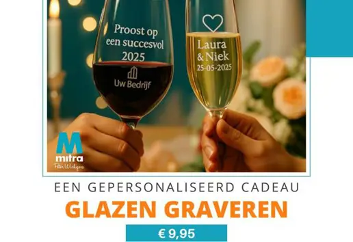 Maak elk glas écht uniek met een persoonlijke gravure. Of het nu gaat om een naam, logo of speciale boodschap: met onze glasgraveerservice geef je een blijvende, stijlvolle touch aan elk moment. Perfect voor: > Jubilea en huwelijken > Originele cadeaus > Gepersonaliseerde glazen (bier, wijn, champagne) > Bedrijfsgeschenken Met glasgravure wordt elk detail onvergetelijk! Loop gerust eens binnen en vraag naar de mogelijkheden!